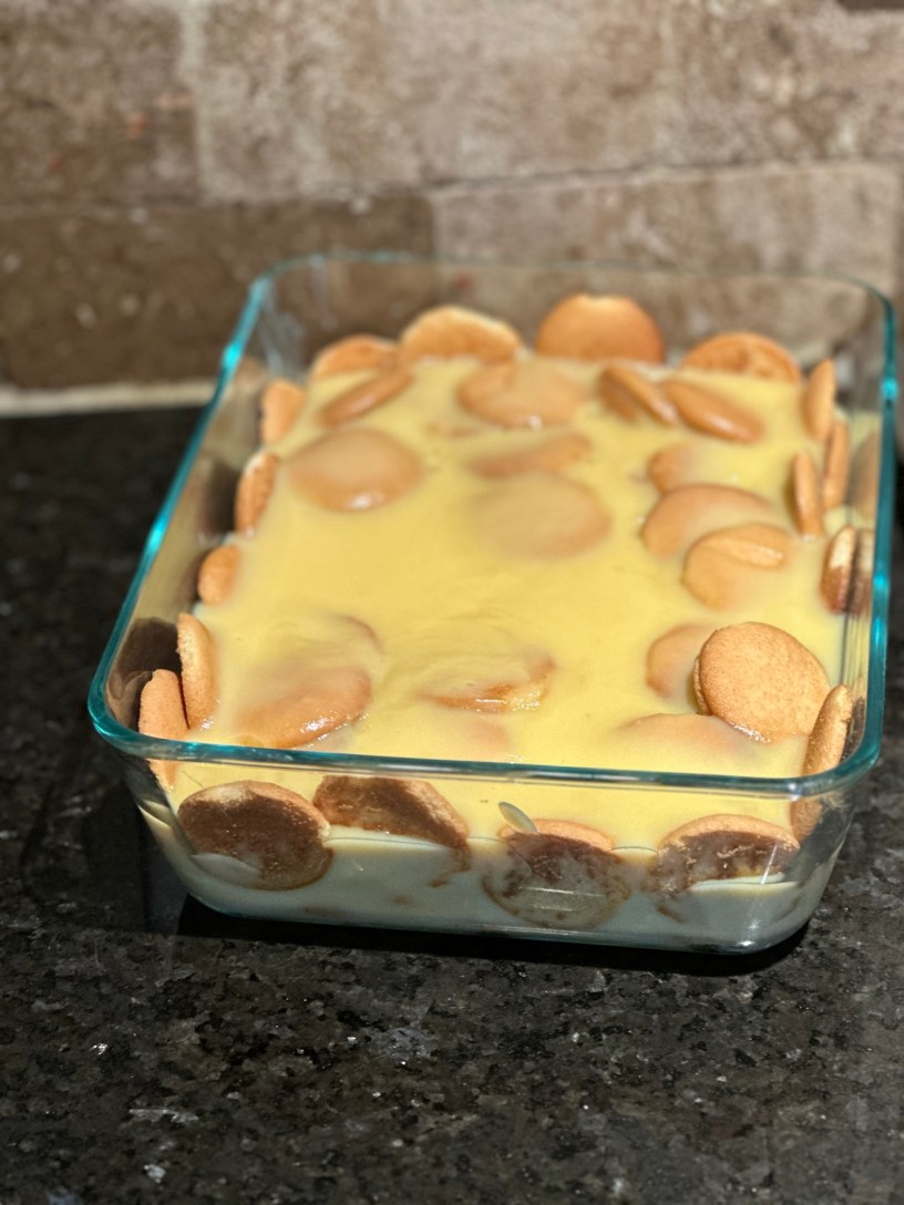 As I poured the pudding over the cookies, I quickly recognized I would come up short. Upon realizing and remembering this happened the last time, I asked my husband “When I made this dessert the last time, didn’t you think I put too many cookies in the dessert? He said, “Yes.” My son came over to look at the dessert and said, “Yeah mama, there is not enough pudding.”